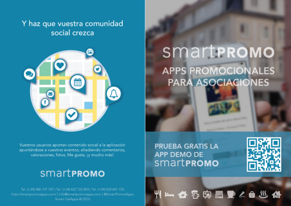 En el marco de la jornada de SmartPymes, Pyme móvil y conectada, celebrada en el Centro de Novas Tecnoloxías de Galicia bajo el impulso de AMTEGA, una de las aplicaciones que se presentaron fue SmartPromo, una app orientada a sociaciones y SmartCities creada por Smart GalApp. Xurxo Méndez, socio y cofundador de la empresa, fue el encargado de explicar a los participantes las ventajas de contar con esta aplicación, centradas en su diseño de aplicación nativa, y su usabilidad, pensada para que cualquier usuario sin conocimientos de programación pueda configurar la app de forma fácil, personalizándola para cada asociación, añadiendo a los asociados y publicándola para que cada asociado o interesado pueda añadir contenidos, crear eventos o informar de novedades.