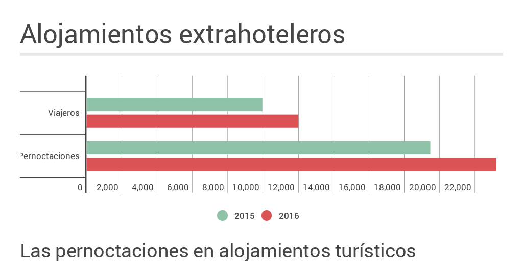 En el conjunto de este segmento, las pernoctaciones en apartamentos, campings, alojamientos de turismo rural y albergues superaron las 12.000 en febrero, un 20% más que en el mismo mes de 2015 aunque la estancia media sigue siendo la asignatura pendiente, con entre 2,36 de los apartamentos turísticos y 1,48 de los alojamientos de turismo rural frente a las seis noches de media nacional. En lo que se refiere al número de viajeros, el incremento durante este período en este tipo de alojamientos fue de un 20% y de un 19% en las pernoctaciones registradas en el mes de febrero respecto al mismo período del año pasado.